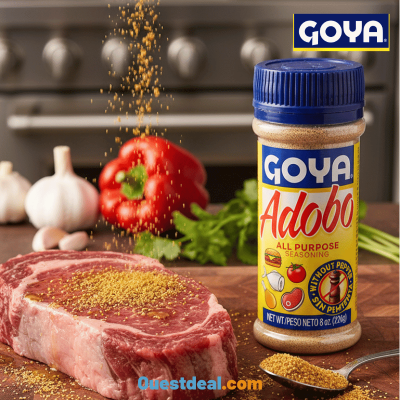 Goya Adobo assaisonnement saveur cumin tout usage. C'est le mélange parfait d'épices latines, ce qui en fait un ingrédient idéal pour vos plats de légumes, de bœuf, de poulet ou de fruits de mer.
