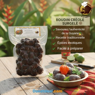 Ce boudin créole surgelé est la star des grandes occasions. Rehaussé d’un soupçon de piment et d’herbes aromatiques, il vous transporte immédiatement au cœur des traditions culinaires de la Guyane. Prêt en quelques minutes, il allie simplicité et excellence.