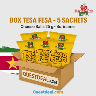 Avec la Box Tesa Fesa, chaque bouchée est une escale exotique. Ressentez l’ambiance des vacances au Suriname, les moments de liberté et de découverte, et redécouvrez le croustillant incomparable de ce snack culte. C’est le goût des retrouvailles, des fêtes de quartier et des instants chaleureux passés en famille.
