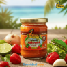 Ingrédients : Oignons, huile de tournesol, vinaigre, piments antillais (habanero), sel, antioxydant : acide ascorbique.