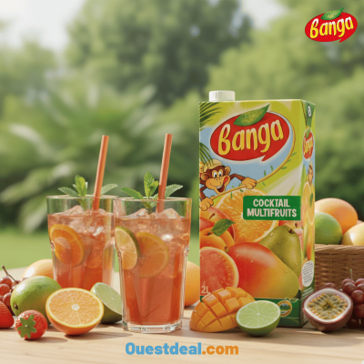 Le Banga Cocktail Multifruit vous invite à voyager sans bouger ! Sa recette équilibrée mêle la douceur du fruit et la fraîcheur des saveurs tropicales. Un jus à savourer en famille, au petit-déjeuner, ou pour un moment de plaisir désaltérant.