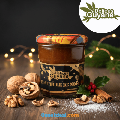 La Confiture de Noël Délices de Guyane est le présent parfait à glisser sous le sapin ! Sa texture veloutée et son parfum épicé transformeront vos repas festifs en voyage gustatif. Une création rare, 100 % made in Guyane, à savourer en famille pendant les fêtes.