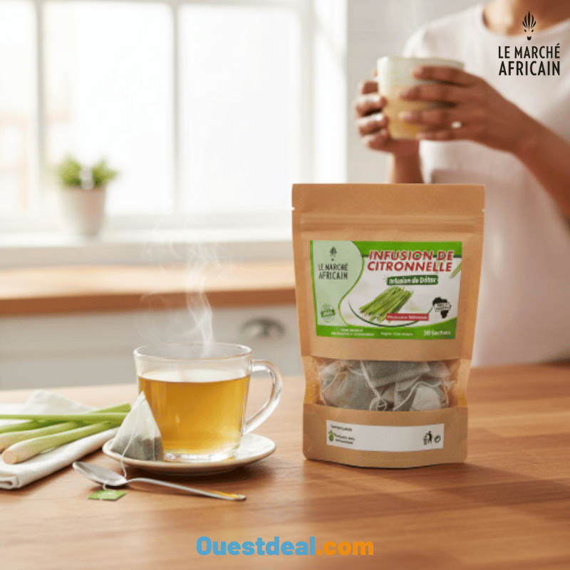 Découvrez l’Infusion de Citronnelle 100 % naturelle, issue d’une production artisanale africaine. Réputée pour ses vertus digestives, relaxantes et anti-inflammatoires, elle se consomme chaude ou froide pour un moment de bien-être. Idéale après les repas ou en cure détox, cette infusion aide à apaiser l’organisme, renforcer les défenses naturelles et réduire les ballonnements. Un véritable allié santé à intégrer dans votre quotidien !