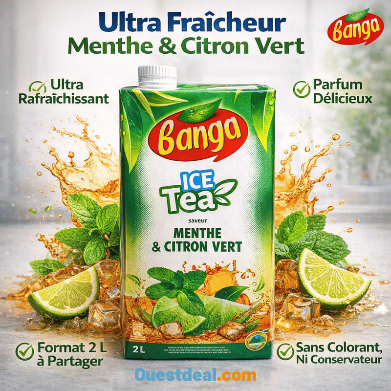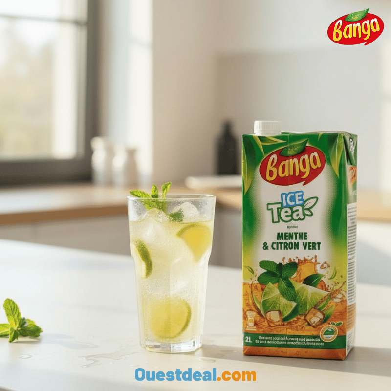 Plongez dans un instant de fraîcheur intense avec le Banga Ice Tea Menthe & Citron Vert. Une boisson rafraîchissante aux extraits de thé, subtilement parfumée à la menthe fraîche et au citron vert. Idéal pour se désaltérer à tout moment de la journée, en famille ou entre amis.