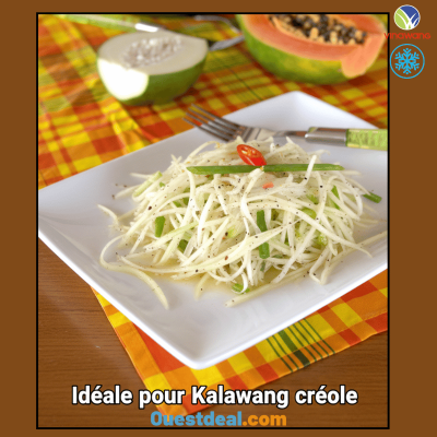 Polyvalente et économique, cette papaye verte râpée peut être utilisée aussi bien en salade, en accompagnement qu’en plat principal. Un produit indispensable pour les amateurs de cuisine créole et Asiatiques authentique.