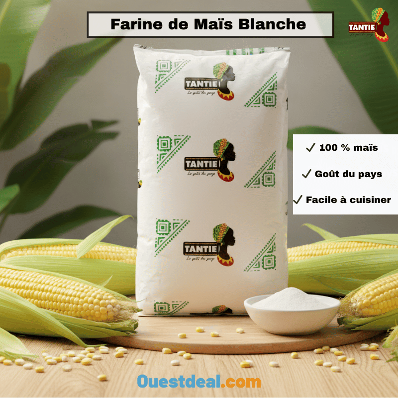 La farine de maïs blanche TANTIE est un indispensable des cuisines africaines, antillaises et créoles. Fine et naturelle, elle permet de réaliser des plats traditionnels au goût authentique du pays. Idéale pour accompagner viandes, sauces et poissons, elle apporte une texture douce et nourrissante à vos recettes du quotidien.