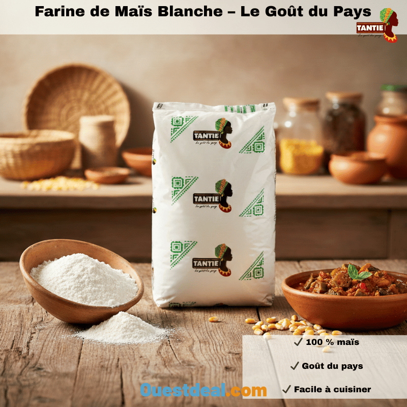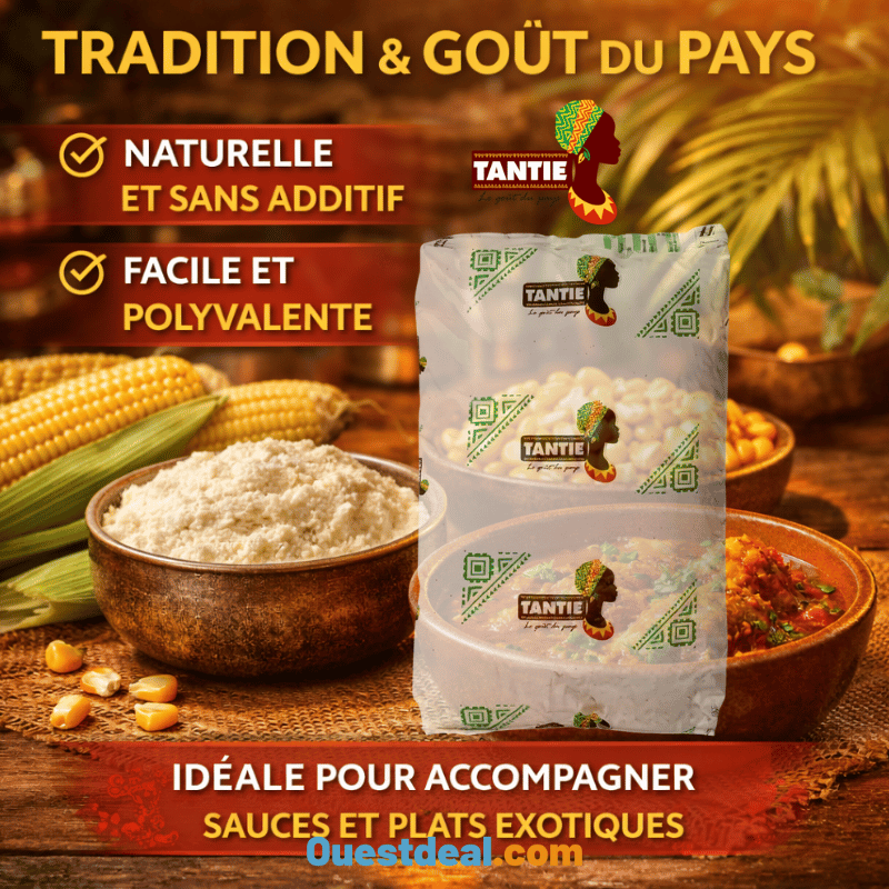 Avec la farine de maïs blanche TANTIE, retrouvez les saveurs d’antan et la cuisine de nos mères et grands-mères. Facile à préparer, elle est parfaite pour des plats simples, nourrissants et généreux, faits maison, même loin du pays.